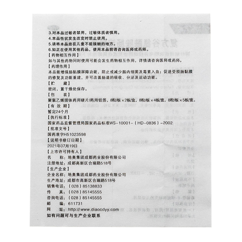 📚 地奥复方谷氨酰胺肠溶胶囊40粒肠道功能紊乱非感染性腹泻
