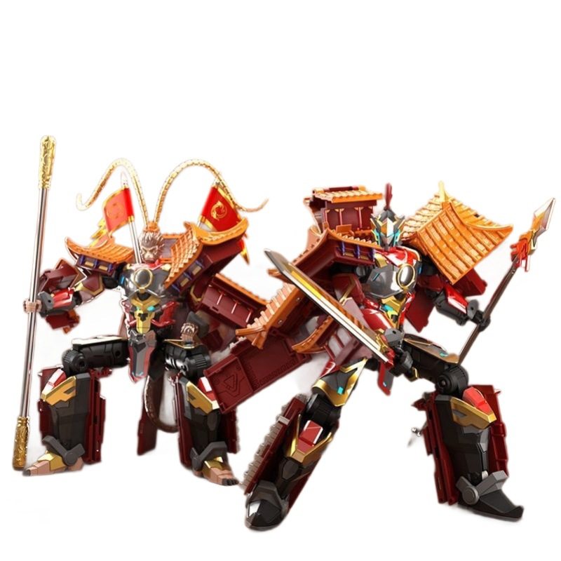 📚 国潮儿童古建筑变形玩具护国大将孙悟空机甲器人模型手办男孩金刚