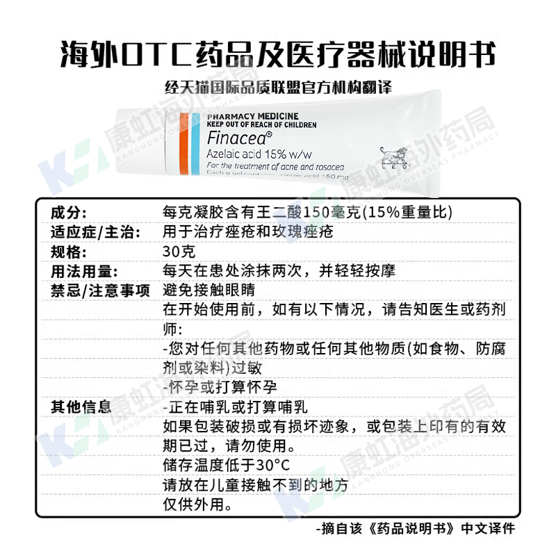 📚 澳洲Finacea壬二酸凝胶15%医用祛痘膏闭口粉刺治疗痤疮Ego思丽安