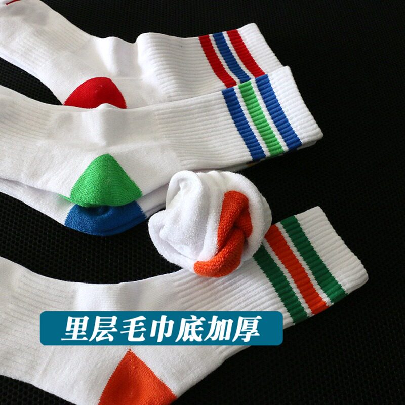 📚 3双秋冬男士高筒袜毛巾底毛圈加厚条纹运动纯棉吸汗时尚白袜子潮