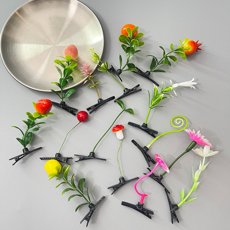 📚 可爱植物花卉头上长草花果实水果桃子搞怪卖萌发夹发卡子鸭嘴夹女