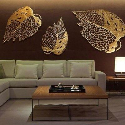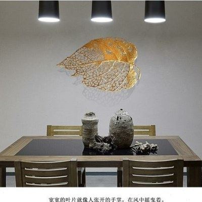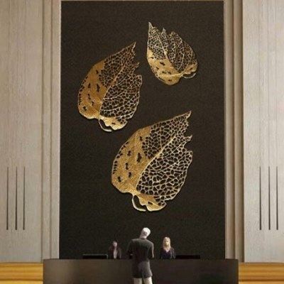 📚 新中式金属铁艺银杏叶组合艺术壁饰样板房酒店大堂餐厅墙面装墙饰