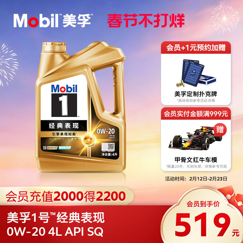 📚 官方旗舰正品Mobil美孚1号经典表现0W-20 4L SQ先进全合成机油