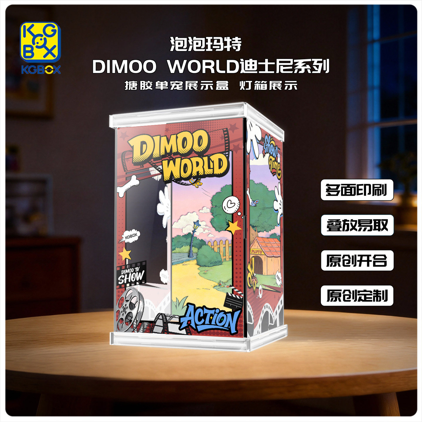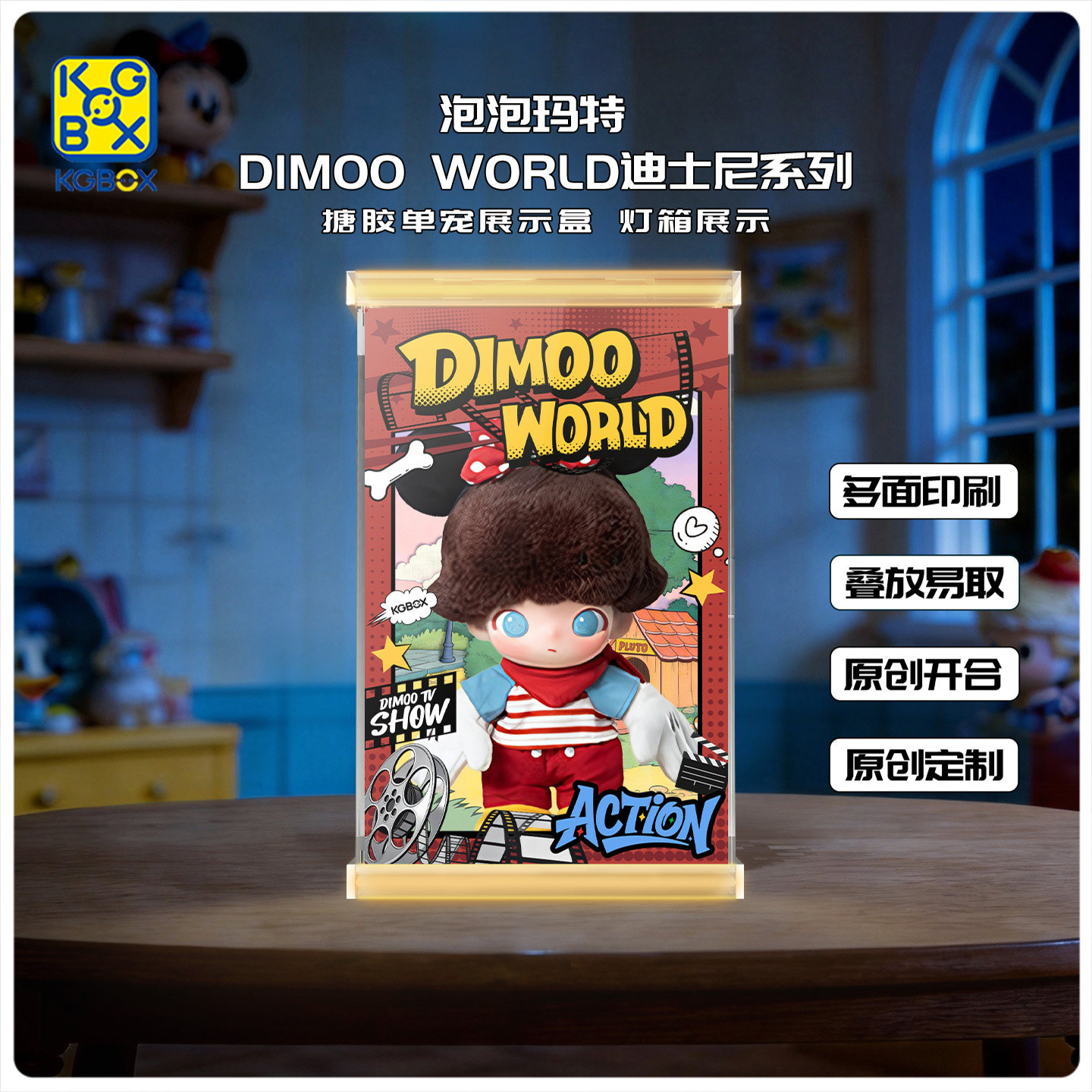 📚 KGBOX适用泡泡玛特DIMOO WORLD迪士尼系列搪胶单宠亚克力展示盒