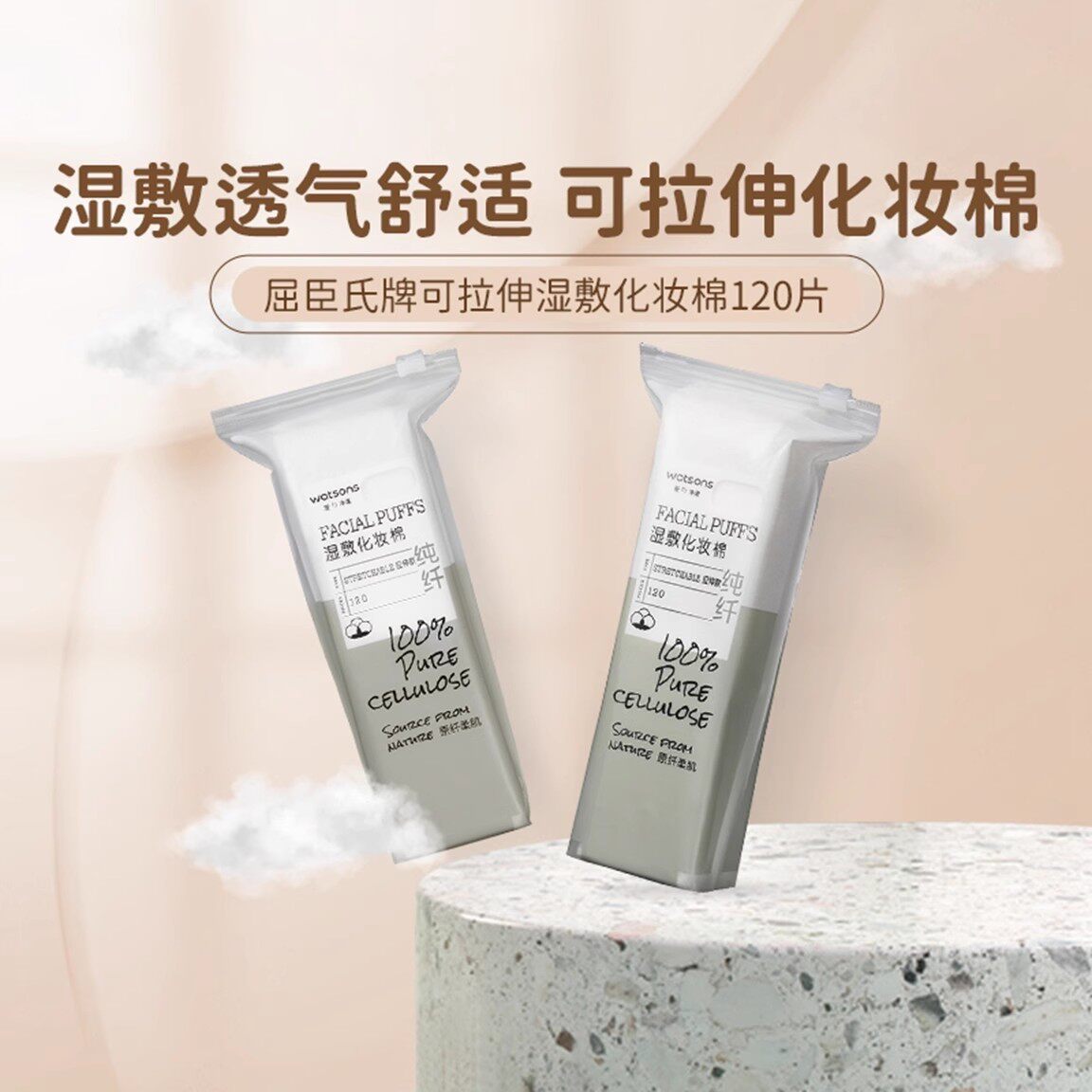 📚 屈臣氏可拉伸湿敷化妆棉120片清洁温和卸妆洁面亲肤纸纤维化妆棉