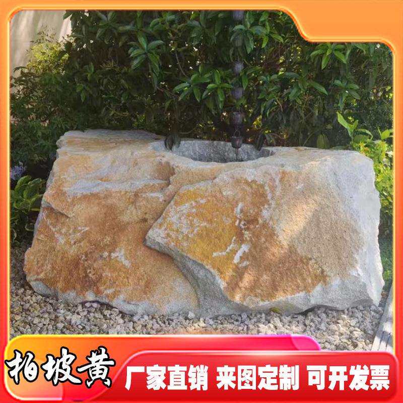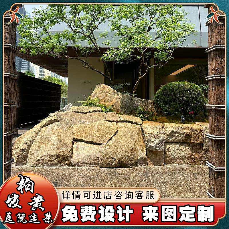 📚 柏坡黄景观石天然石材园林老石皮庭院别墅民宿碎拼地铺不规则造景