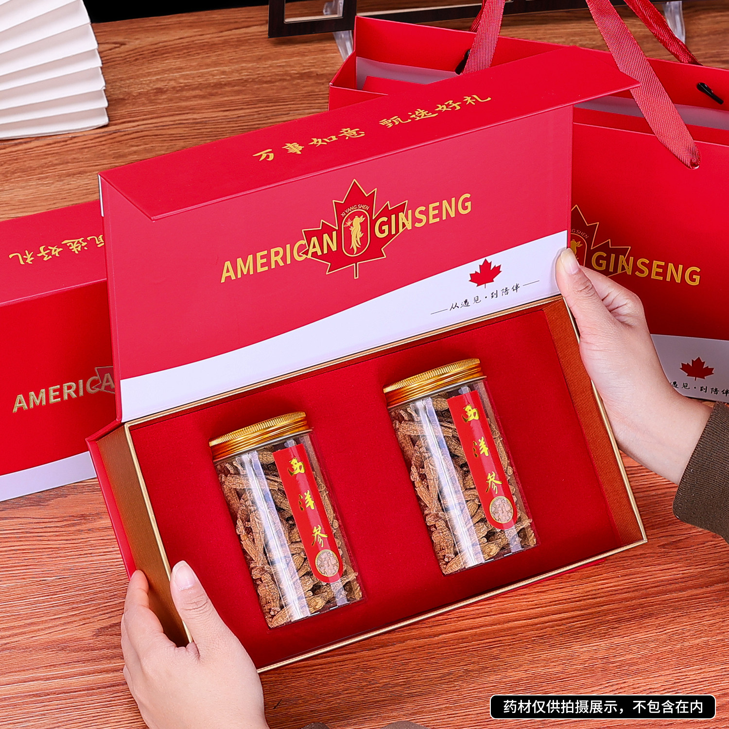 📚 新款西洋参片包装盒高丽参双拼三拼瓶罐装西洋参粉礼盒空盒高级感