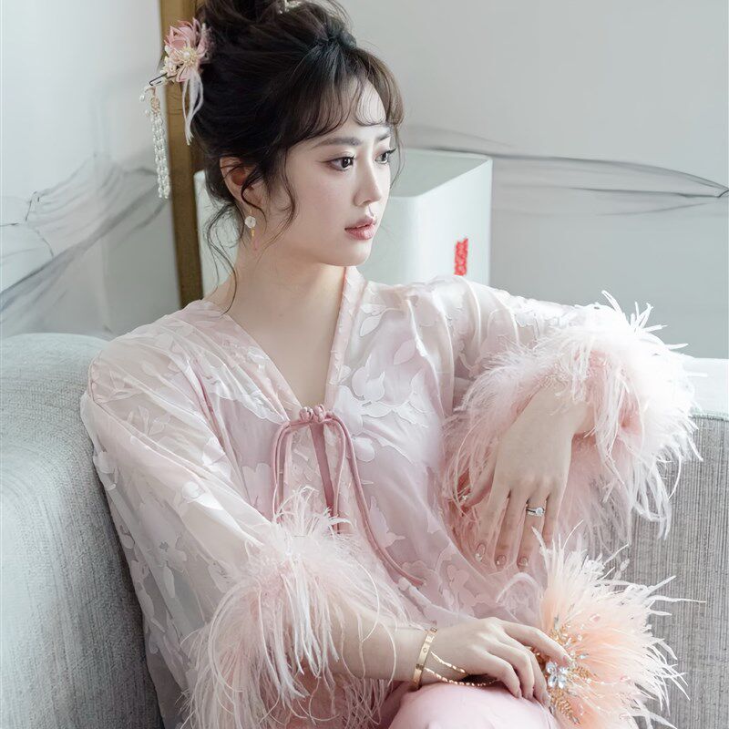 57¥ CZ005 5lSqUu0DeSz¥ https://m.tb.cn/h.idM5AGk 新中式晨袍新娘结婚仙女粉色高级感驼鸟毛睡衣睡袍春秋羽毛可拆卸 --------------------- 【原售价】781元 【现售价】781元。