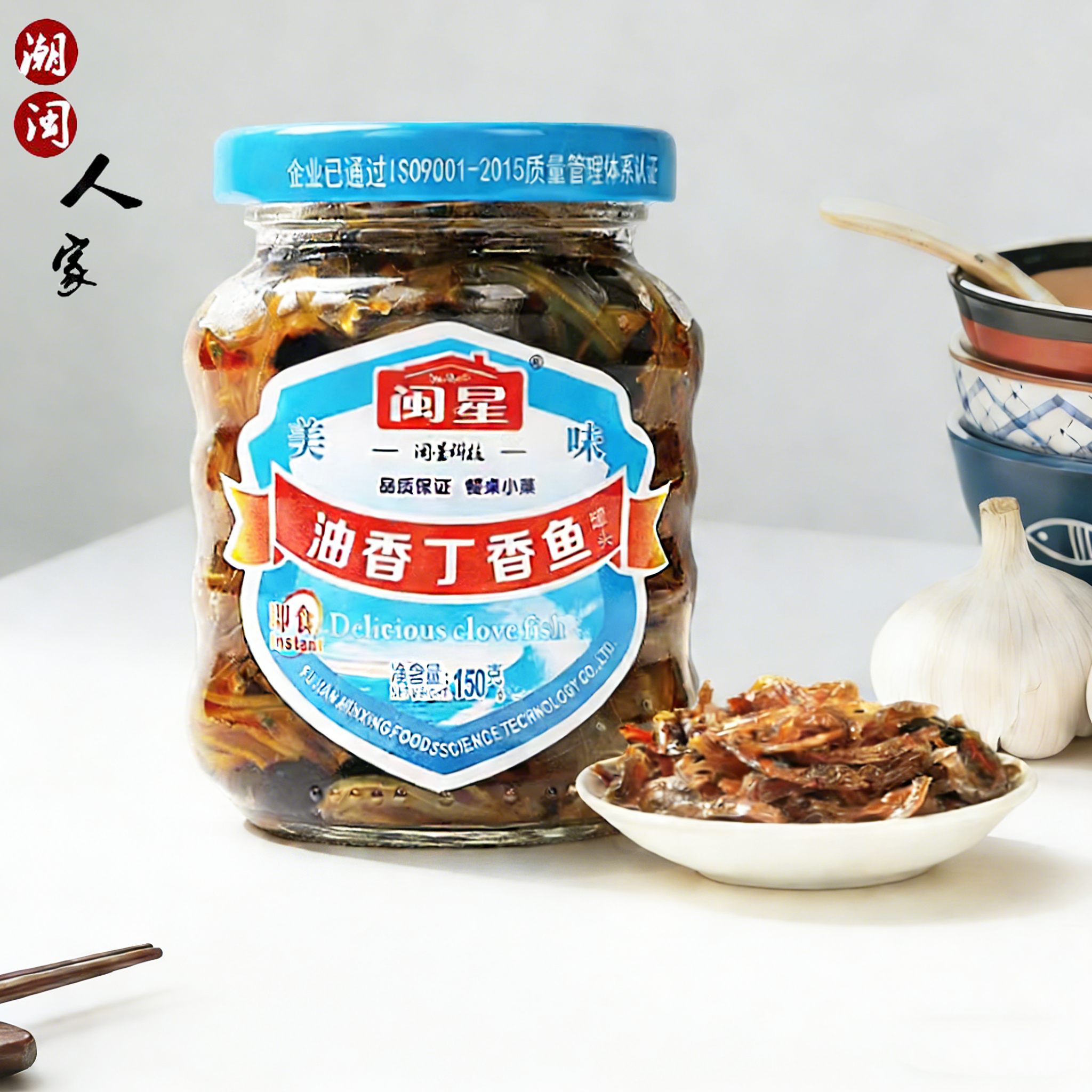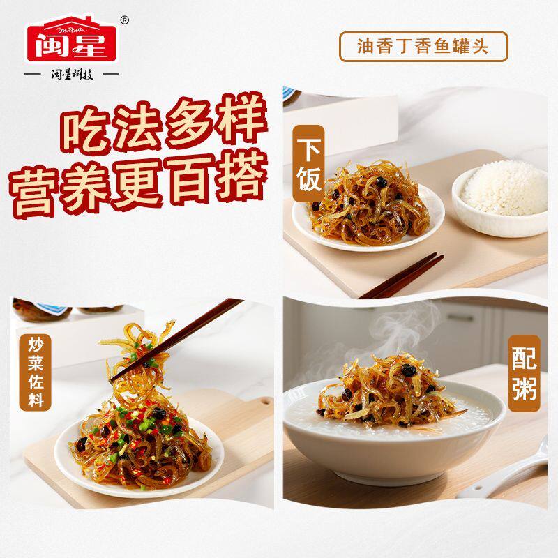 📚 闽星油香丁香鱼150g即食下饭早餐配粥香海鲜小银鱼罐头瓶装