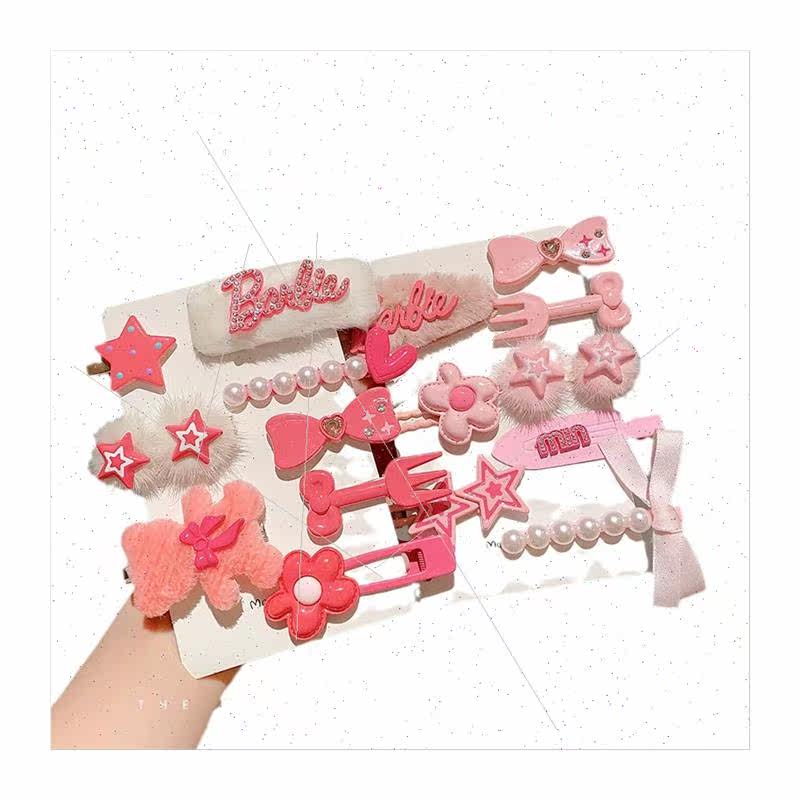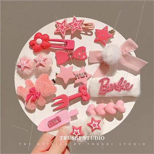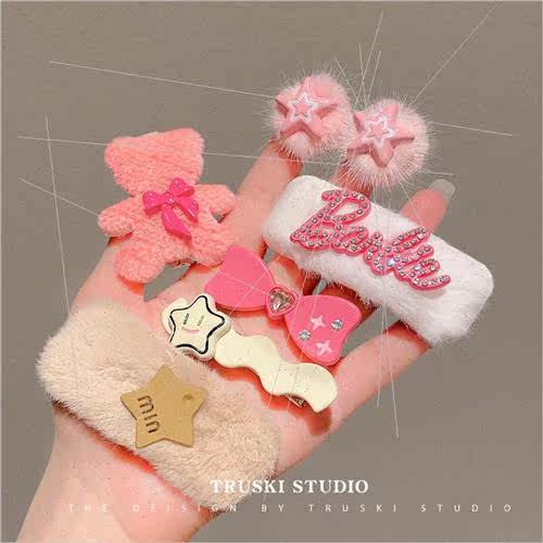 📚 Baby hair clips set children cute pink plush hair clips ltle