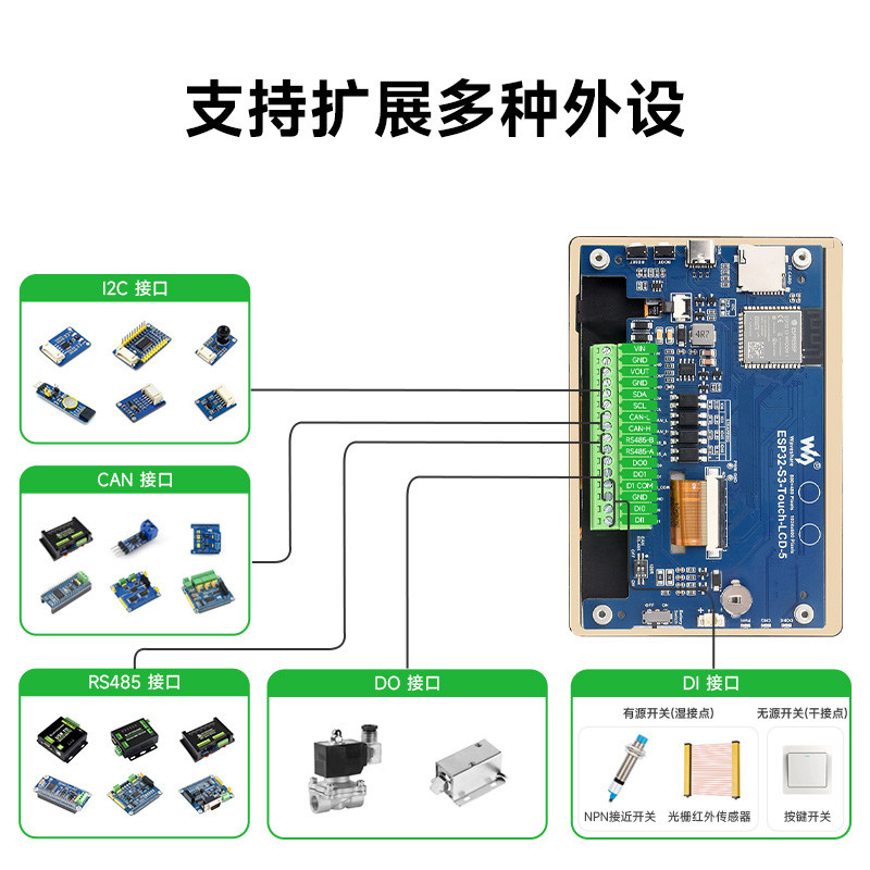 📚 微雪 5英寸LCD触摸屏开发板ESP32 S3主控 LVGL开发 支持WiFi/蓝牙