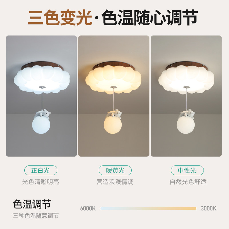 📚 至御中古奶油风小熊儿童房吸顶灯云朵灯男孩女孩房间卧室灯X2737