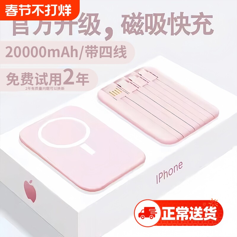 📚 磁吸充电宝自带线20000毫安新国标3C认证2025大容量快充超薄小巧便携无线适用苹菓17专用手机有线闪充电源