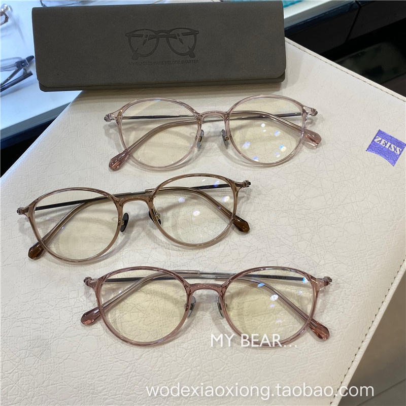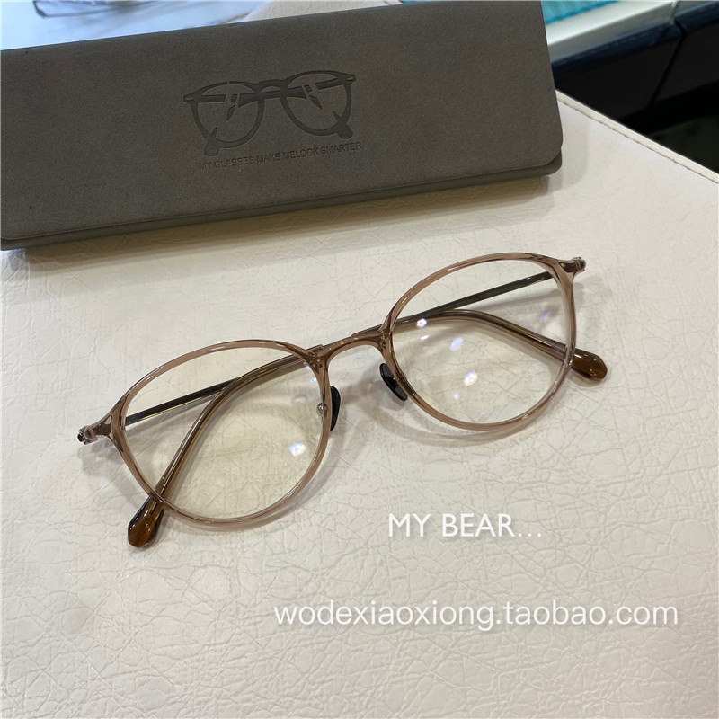 📚 透茶色眼镜女韩系超轻小框素颜女小脸猫眼防蓝光可配度数眼镜架