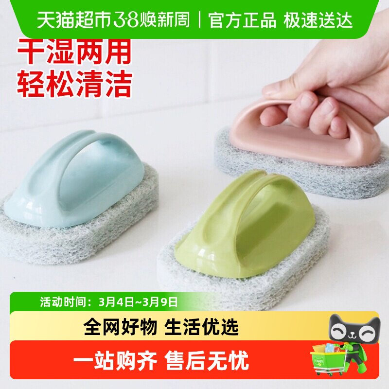 📚 妙然厨房浴室水池刷去污百洁布浴缸刷海绵瓷砖刷子清洁海绵擦1件