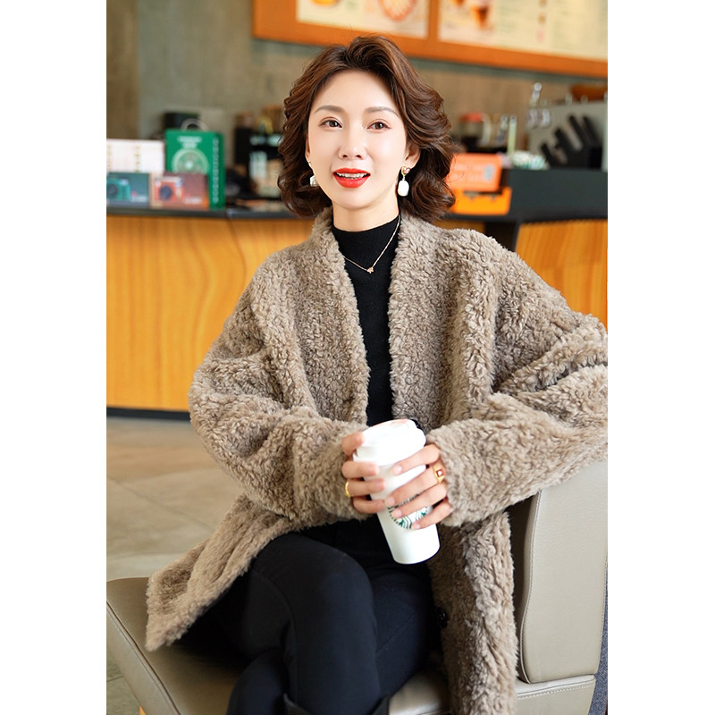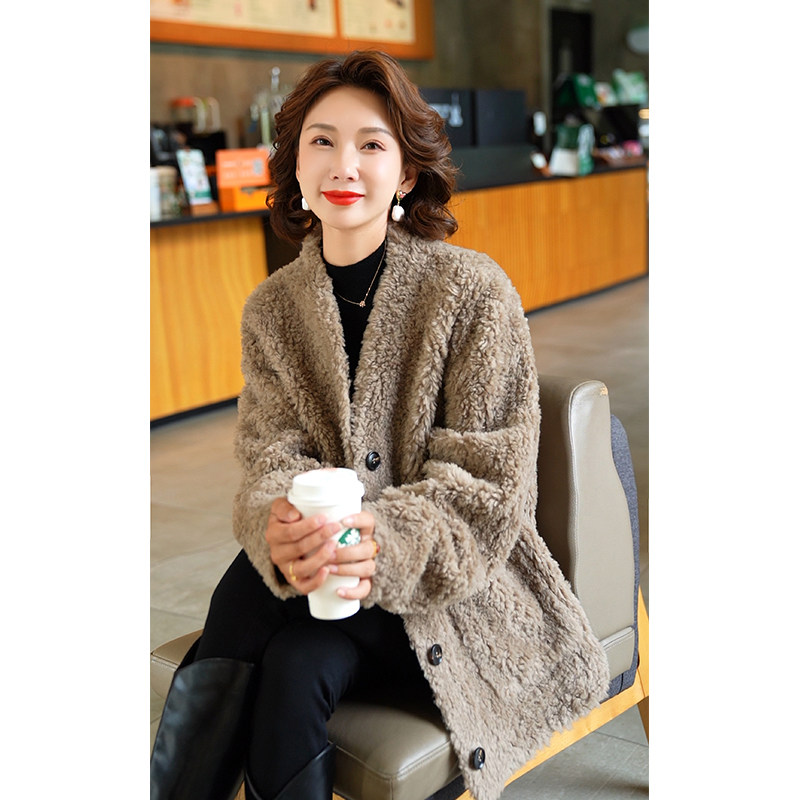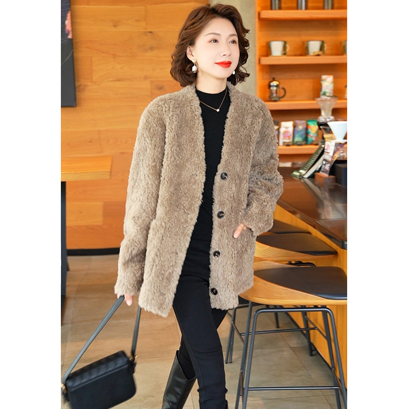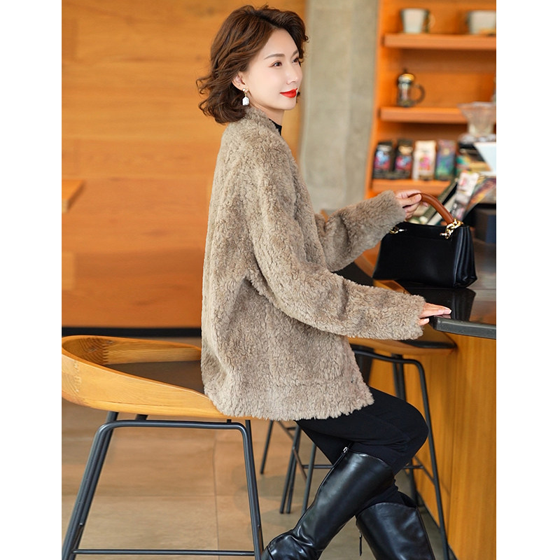 📚 驼色羊剪绒上衣女2024年秋冬新款小个子洋气羊剪绒外套小众设计感