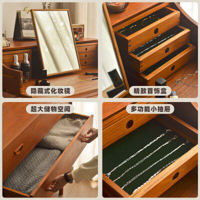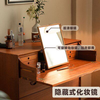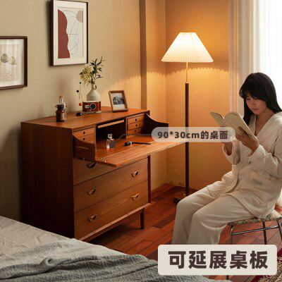 📚 萨得复古长实木书桌实木斗柜北欧柚木梳妆台化妆台一体船卧室简约