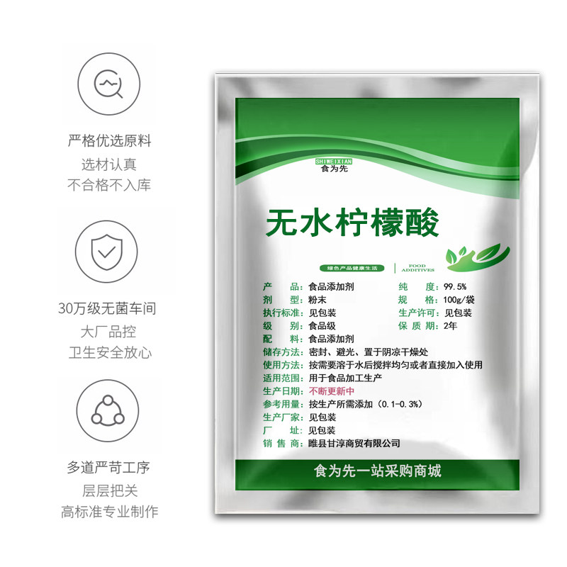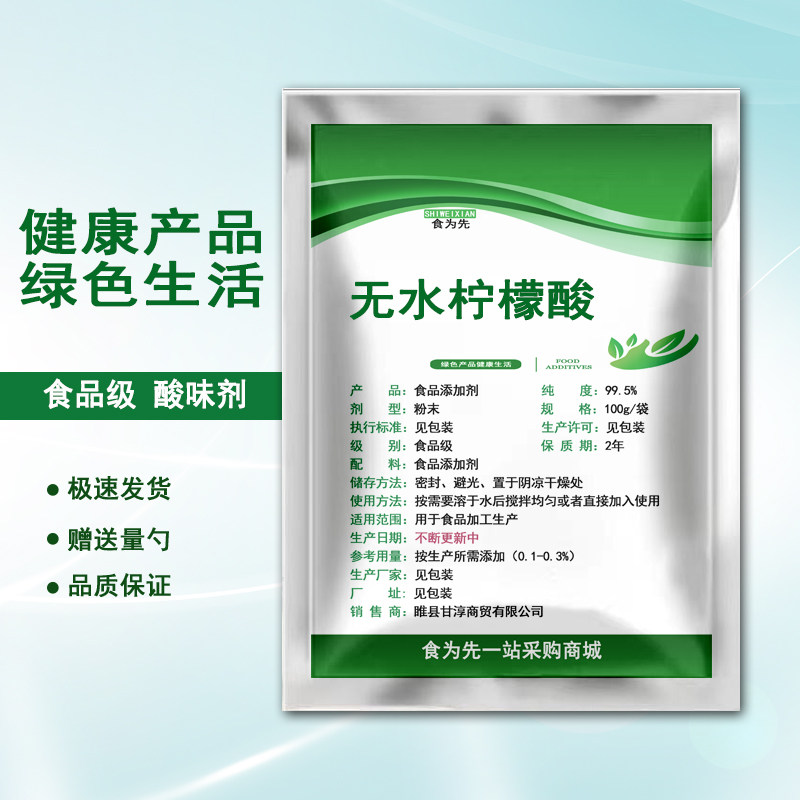 📚 食品级一无水柠檬酸食用酸味剂酸度调节剂果汁饮料糖果去水垢茶锈