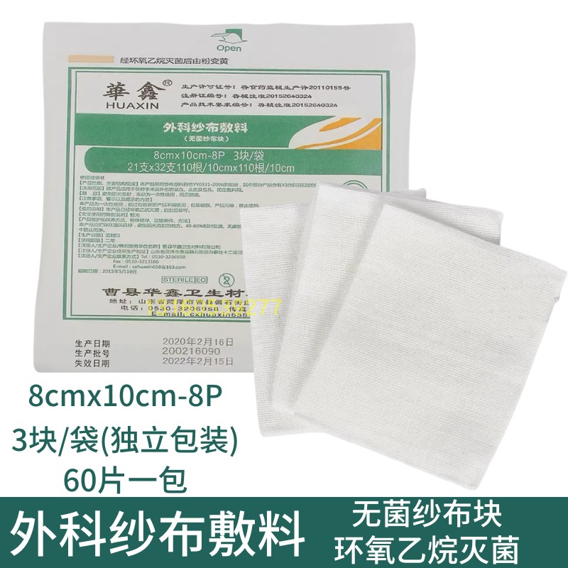📚 华鑫医用无菌纱布片8x10cm 灭菌消毒纱布块外科敷料纱布块60片
