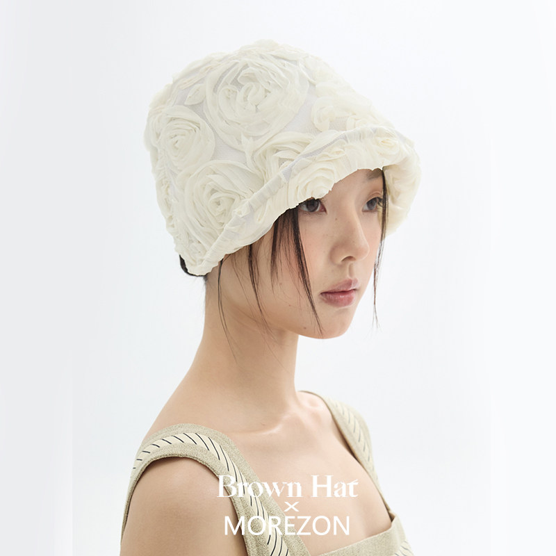 📚 MOREZON【Brown hat Petit Rosey Bonnet Hat】26春夏玫瑰侍女帽
