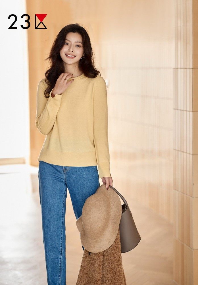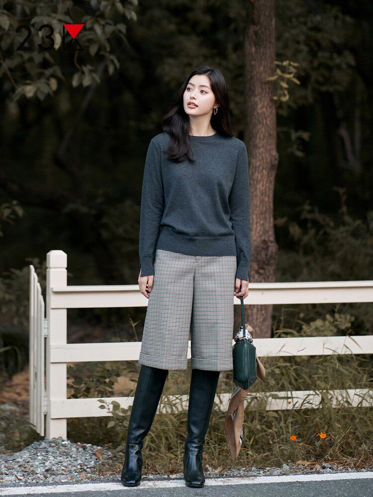 📚 23区日系秋季通勤直筒羊毛羊绒混纺圆领套头毛衣针织毛衫商场同款