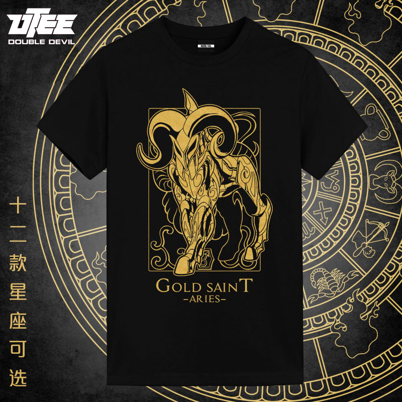 📚 圣斗士星矢十二星座T恤白羊座射手潮牌情侣男女同款宽松纯棉短袖