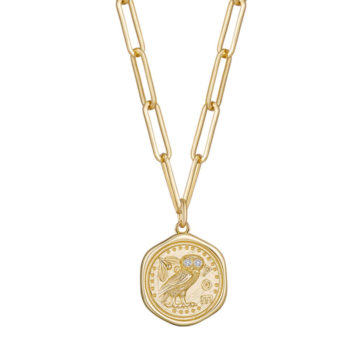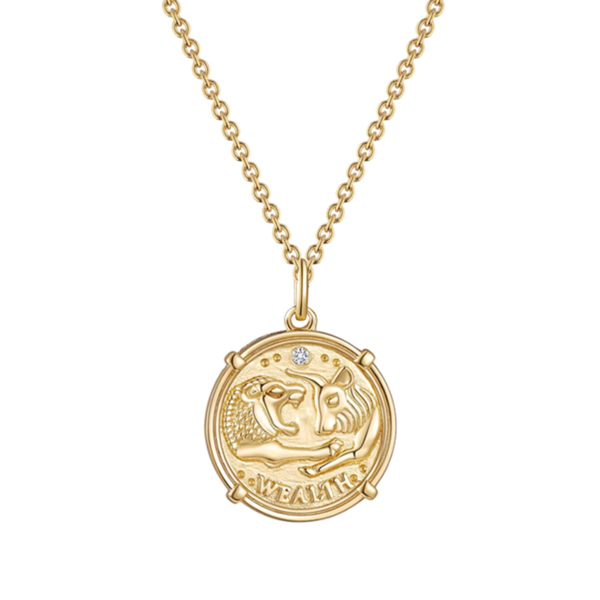📚 18K幸运金币项链 女纯银镀黄金色智慧币财富币自由币心愿币锁骨链