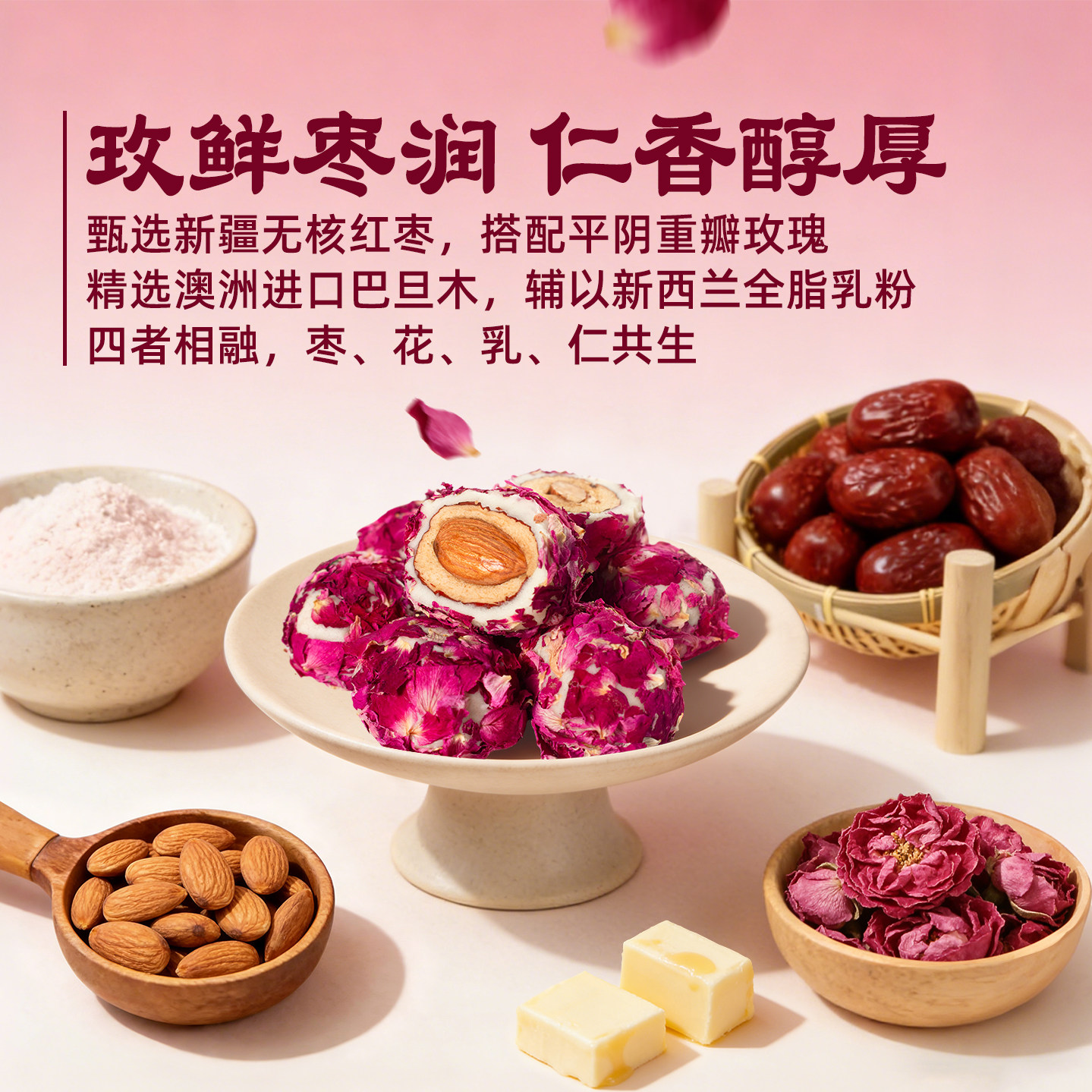 📚 本宫饿了玫瑰奶枣巴旦木夹心去核红枣办公室下午茶蜜饯解馋小零食