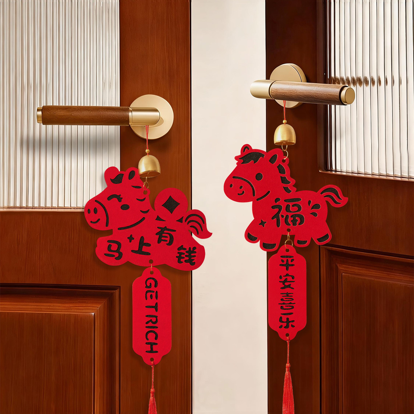 📚 新款马年门把手挂件氛围布置入户门卧室房门装饰新年春节创意挂饰