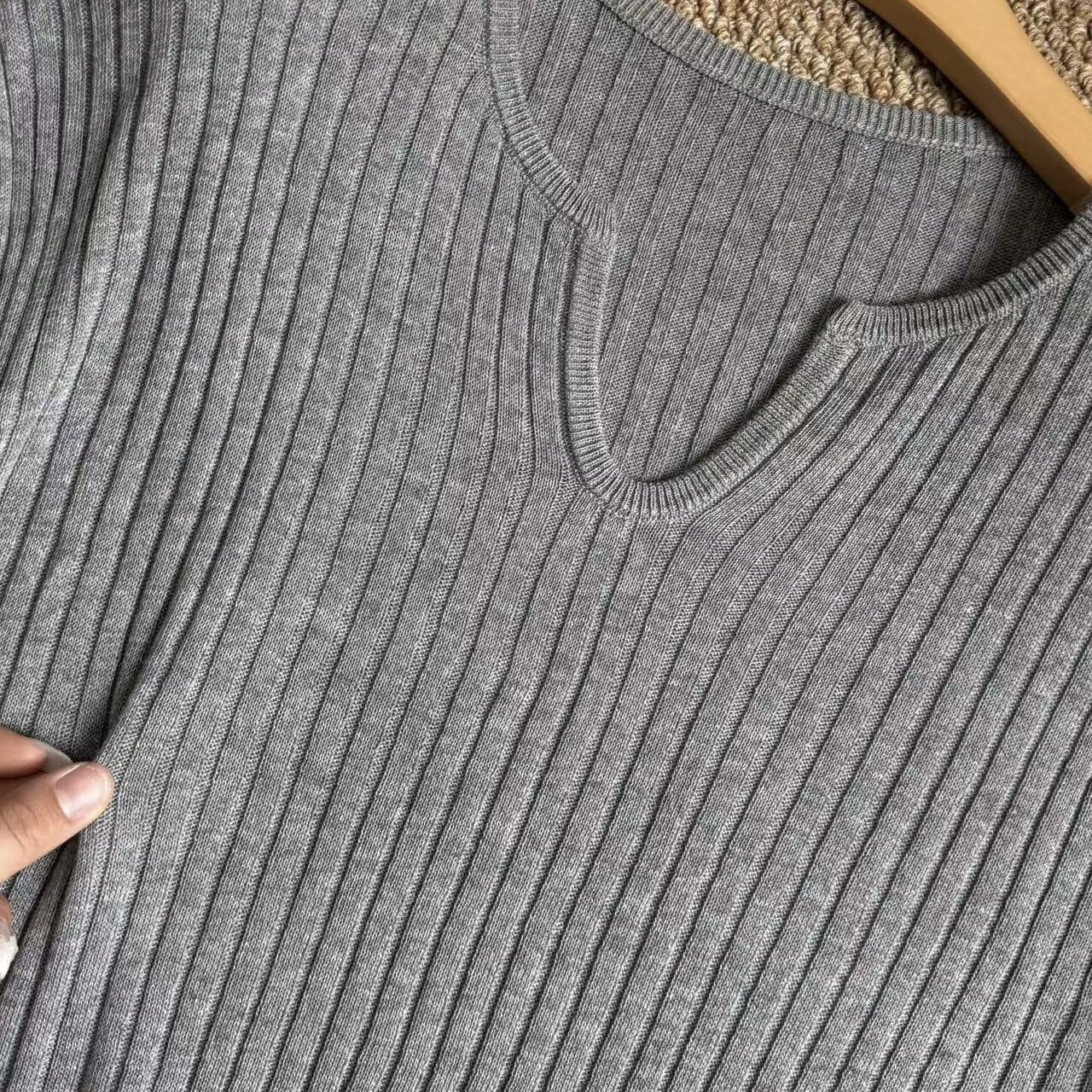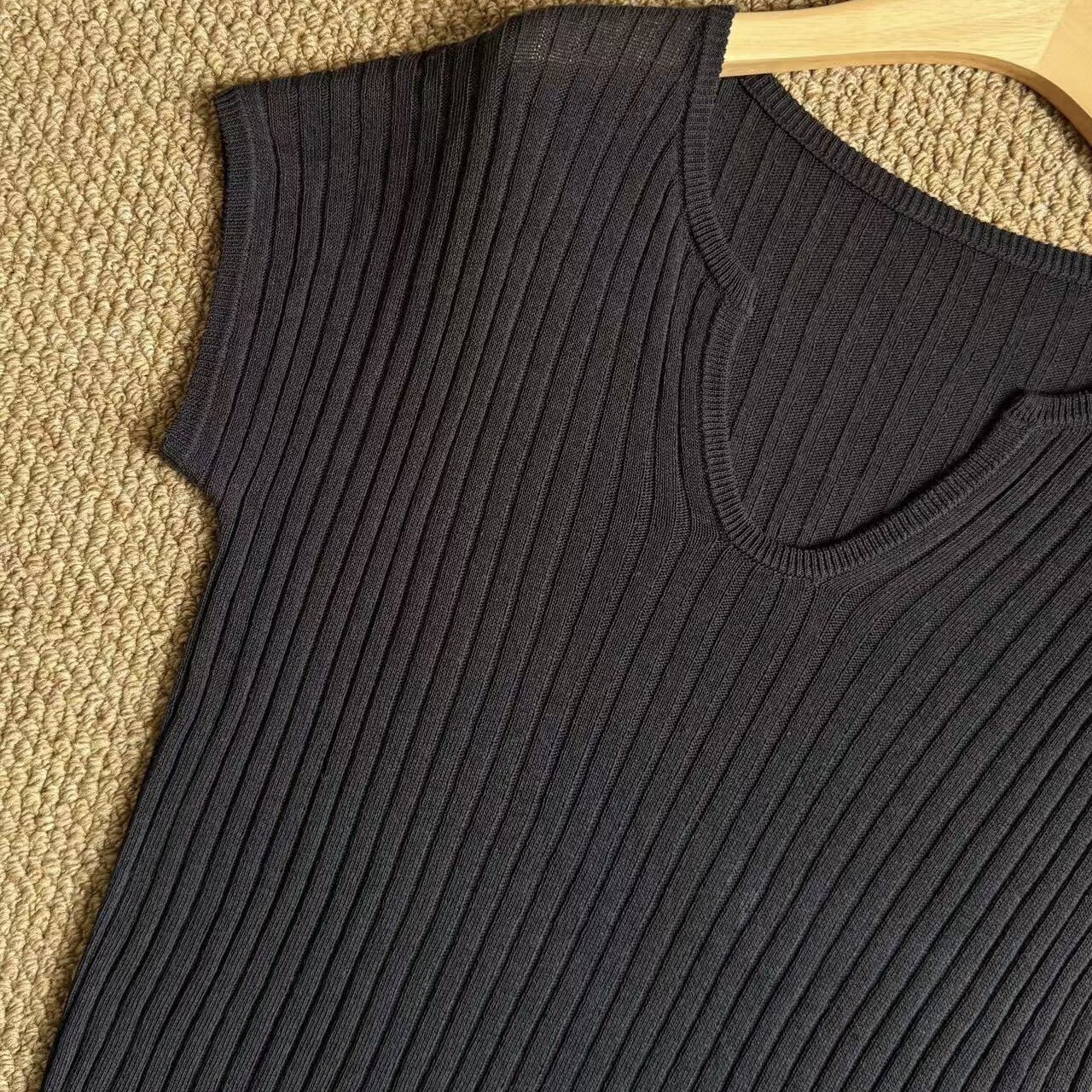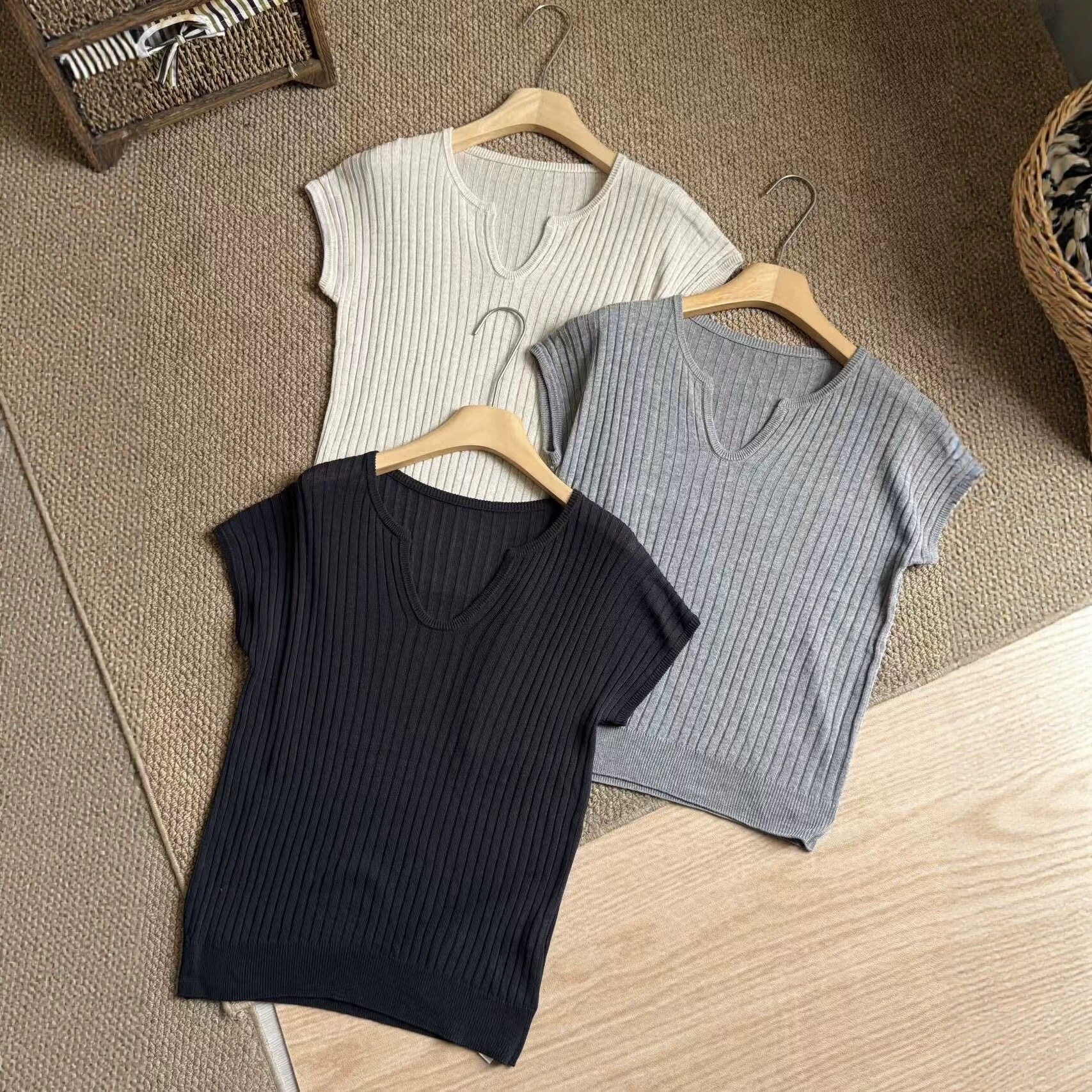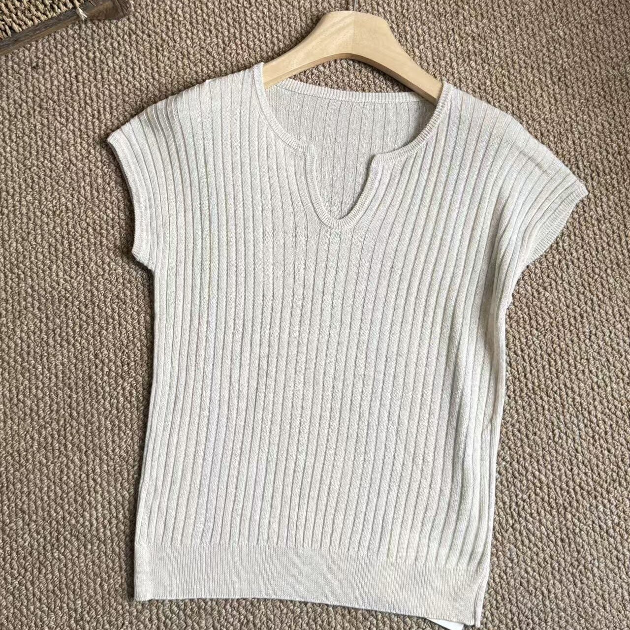📚 自带凉意~通勤百搭v领飞袖针织t恤上衣女夏季显瘦老钱风亚麻短袖