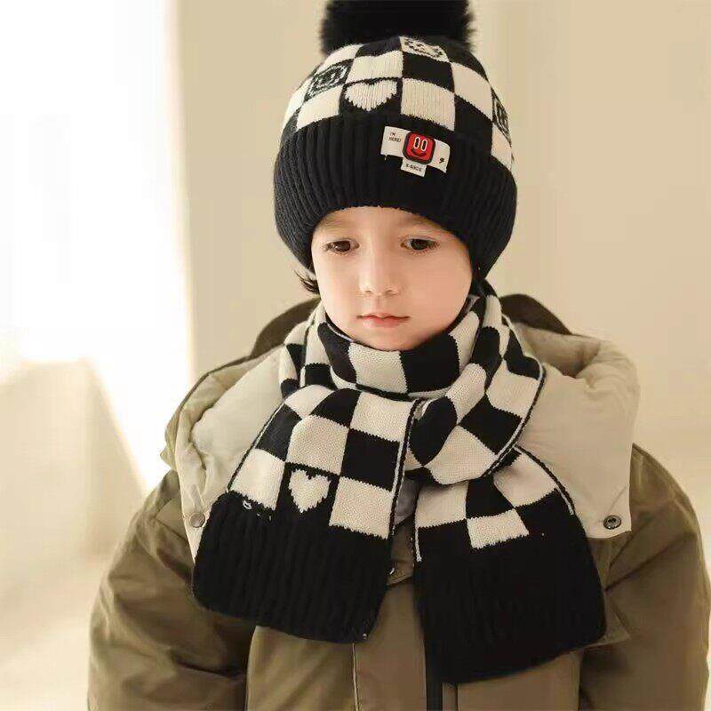 📚 儿童帽子男孩围巾套装秋冬季男童2025新款毛线帽宝宝冬款冬天围脖