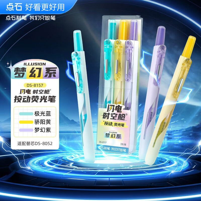 📚 点石闪电时空舱荧光笔按动彩色记号笔学生笔记用易手控记号笔8157