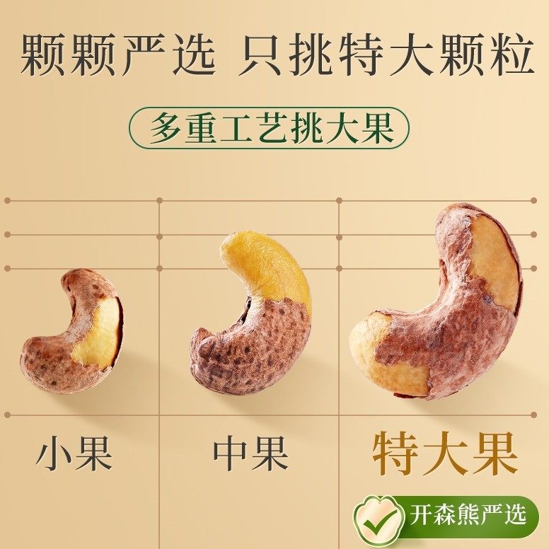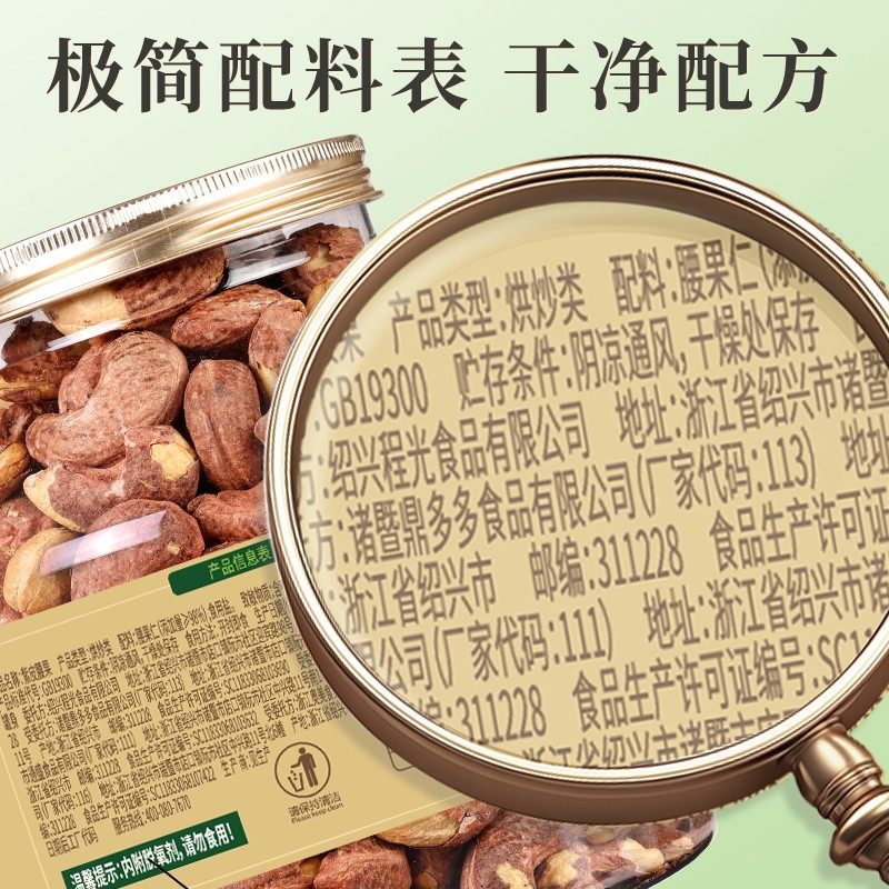 📚 开森熊A170带皮大颗粒腰果坚果零食罐装越南紫衣特大腰果干果酥脆