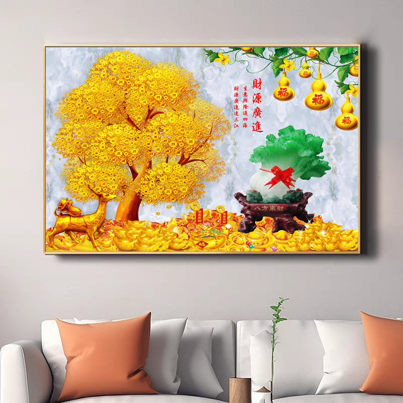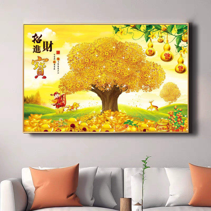 📚 发财树客厅餐厅装饰画酒店饭店招财黄金满地摇钱树办公室墙壁挂画