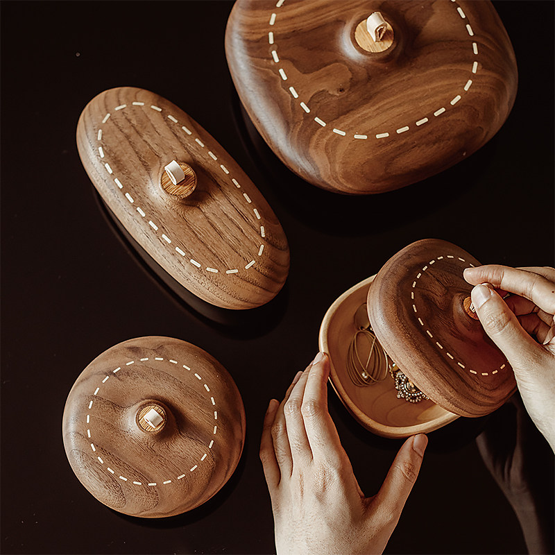 📚 胡桃木首饰戒指手镯收纳盒带盖防尘原创设计高级感精致礼物送朋友