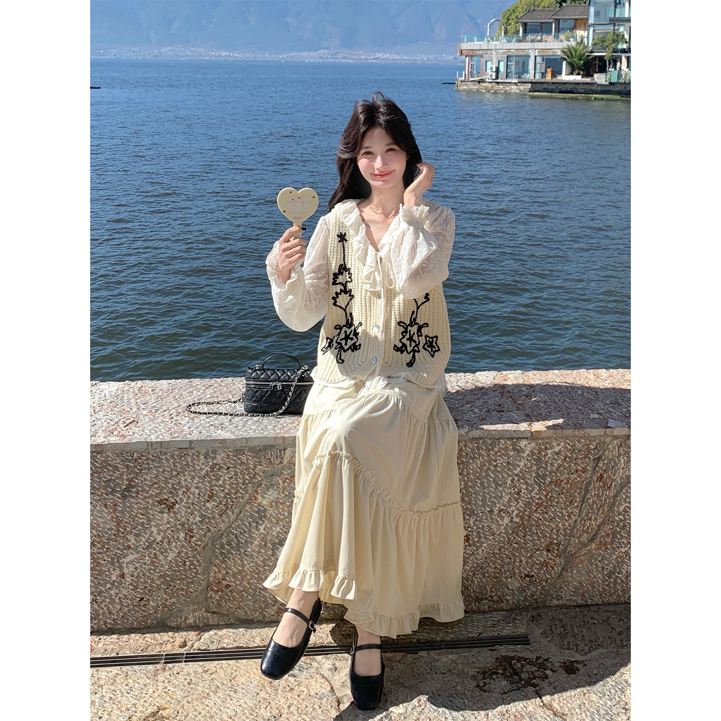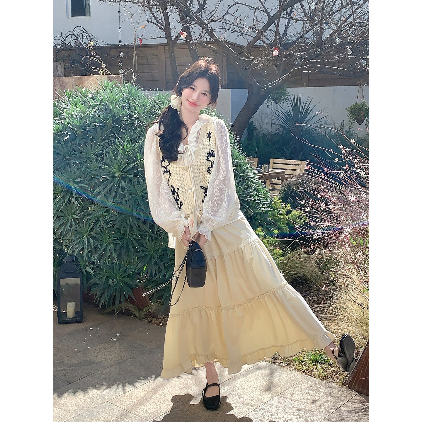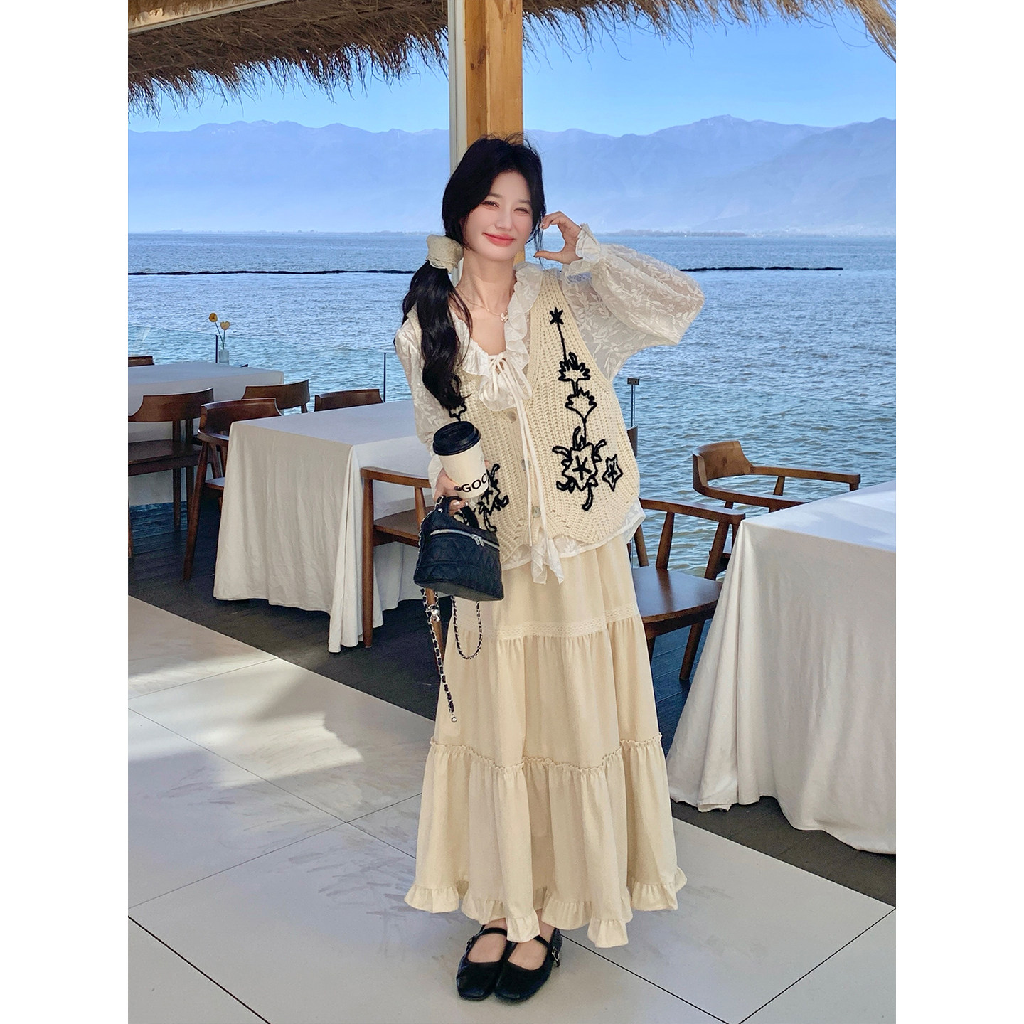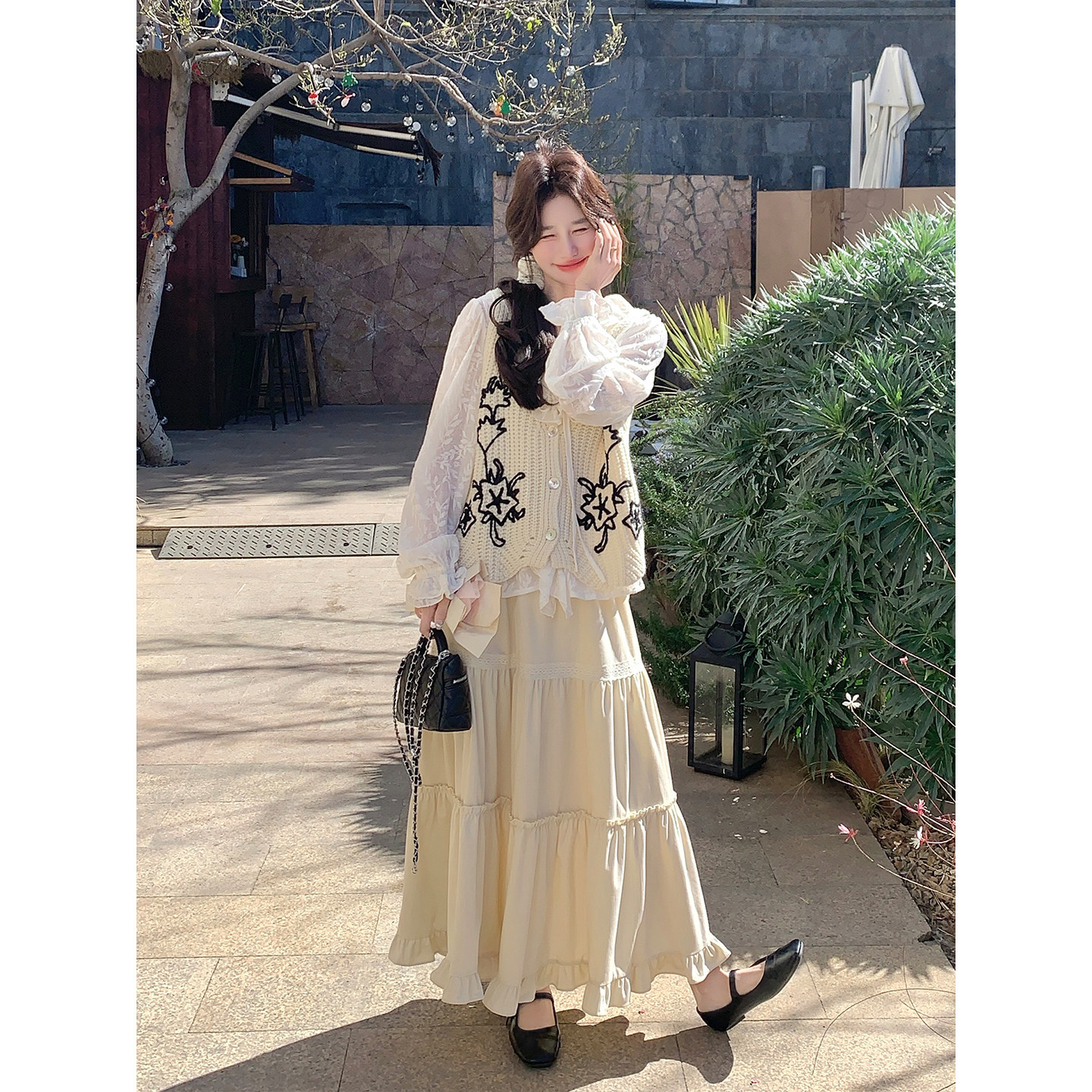 📚 米色一整套超火减龄套装裙女春季2026年新款马甲上衣半身裙三件套