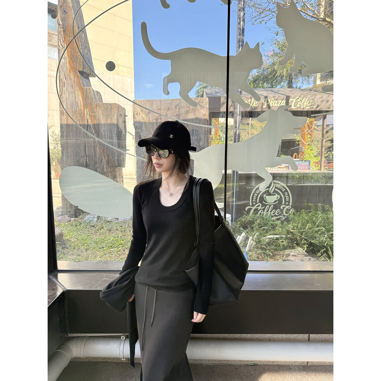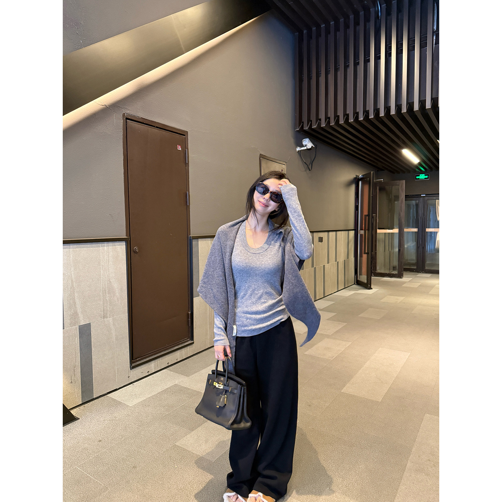 📚 MOMENTHOME高雅经典版三色U领毛衣1OO羊毛修身显瘦针织打底毛衣女