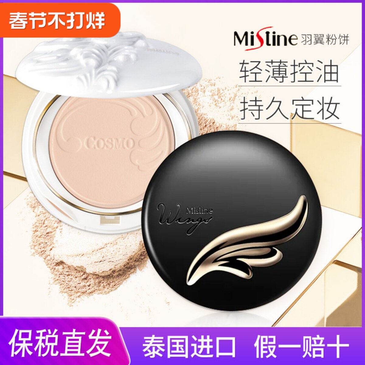 📚 泰国Mistine蜜丝婷陶瓷羽翼粉饼 防晒遮瑕防水补干粉控油定妆持久