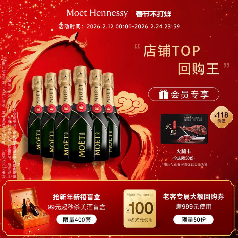 📚 官方直营 Moet酩悦香槟迷你瓶200ml 2/6支装法国进口