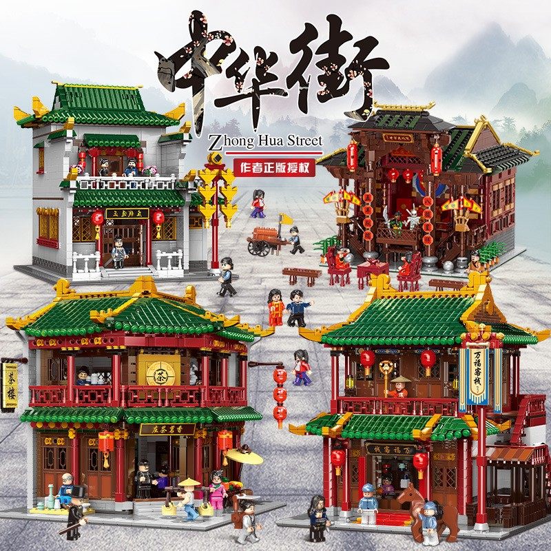 📚 星堡中华街古建筑万福客栈街景香茗茶楼场景模型拼装积木玩具摆件
