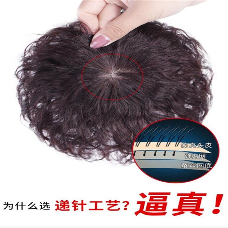 📚 遮白发假发片真发头顶补发片女无痕增加发量蓬松短发羊毛卷隐形