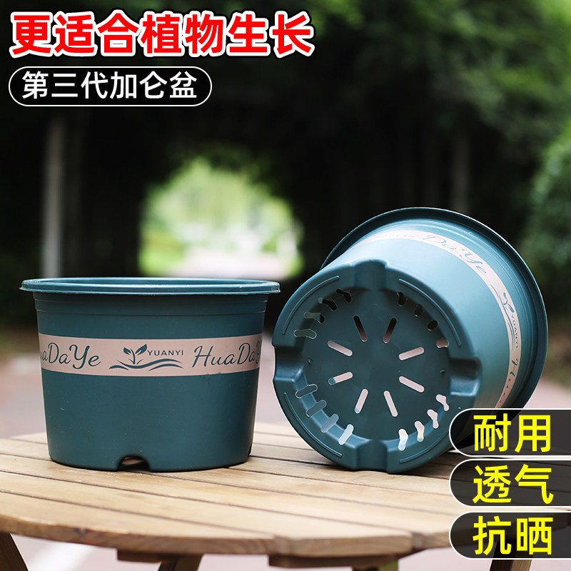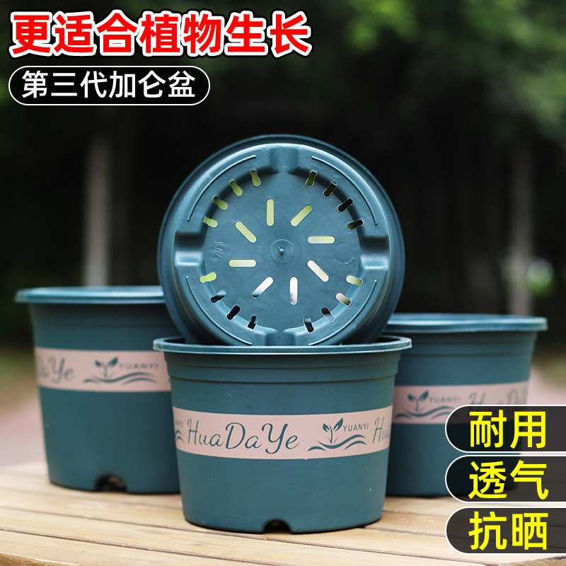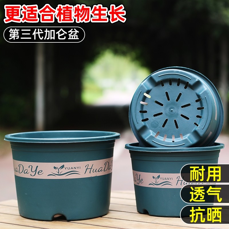 📚 圆形高款树脂塑料花盆透气控根多孔耐用三代加仑盆带托盘阳台