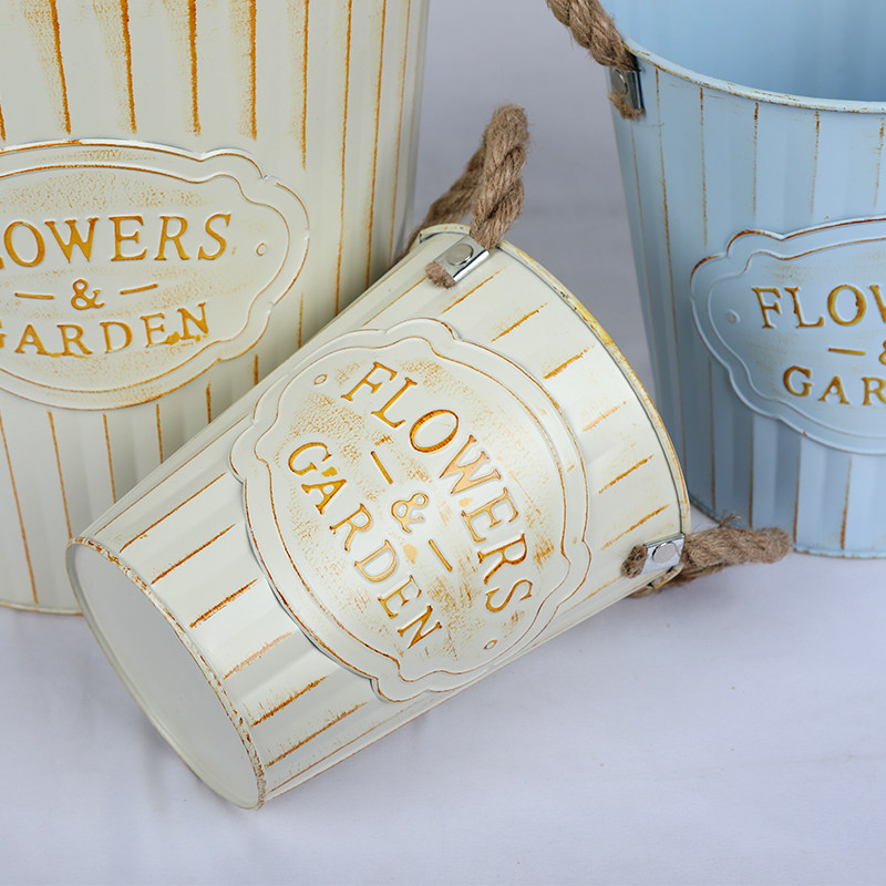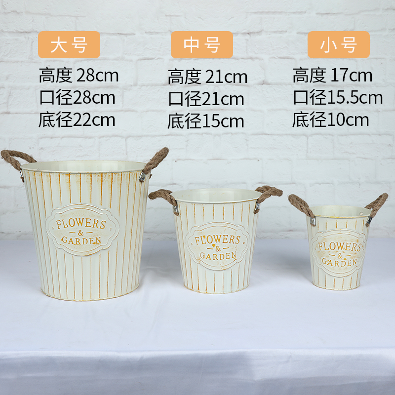 📚 铁皮花盆复古花器花桶绿植盆栽室内室外麻绳耳花盆套盆客厅装饰盆