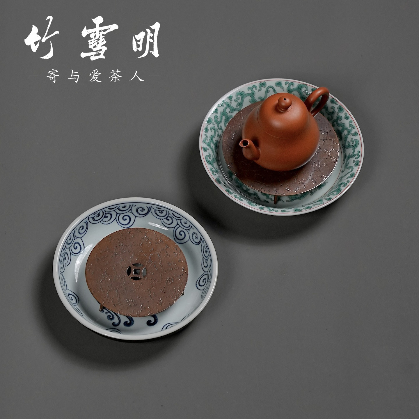 📚 竹雪明|铜钱三足紫铜茶漏搁架铜盖置壶盖托茶滤架盖架铜托座茶托