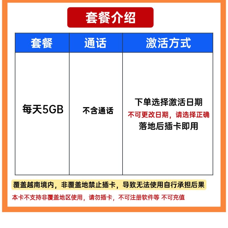 📚 越南电话卡viettel河内胡志明岘港芽庄流量上网5G卡每天5GB