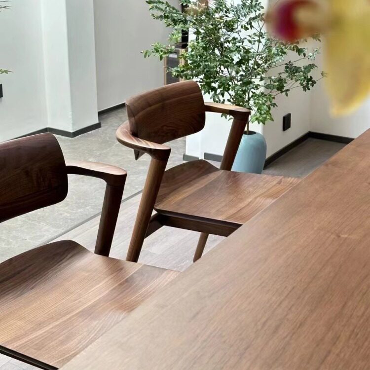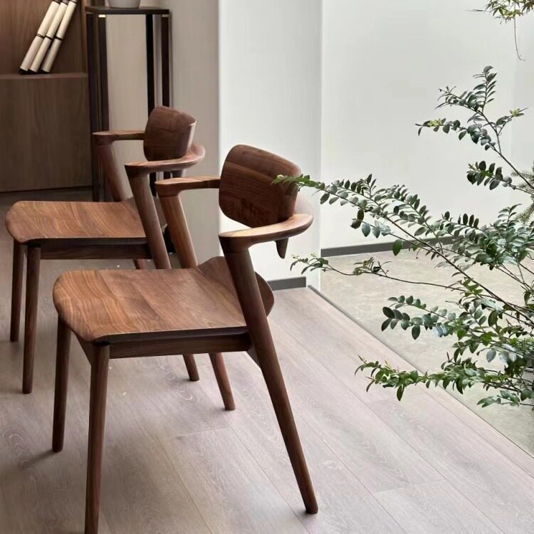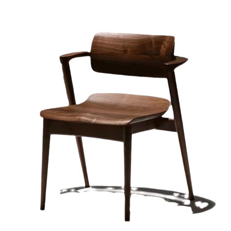 📚 北美黑胡桃木实用餐椅新中式茶椅简约实木靠背椅半扶手川上椅