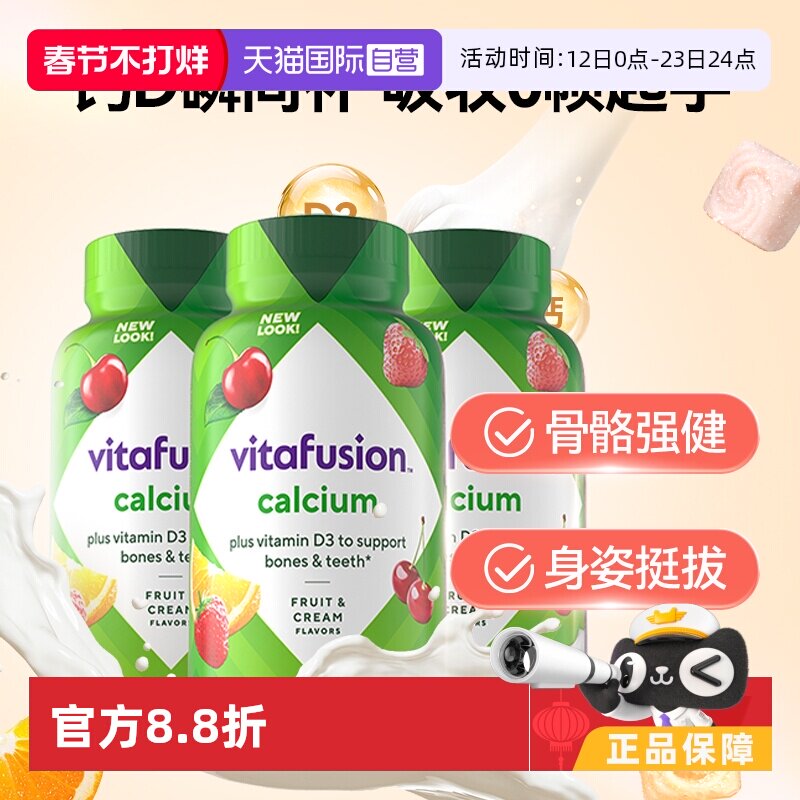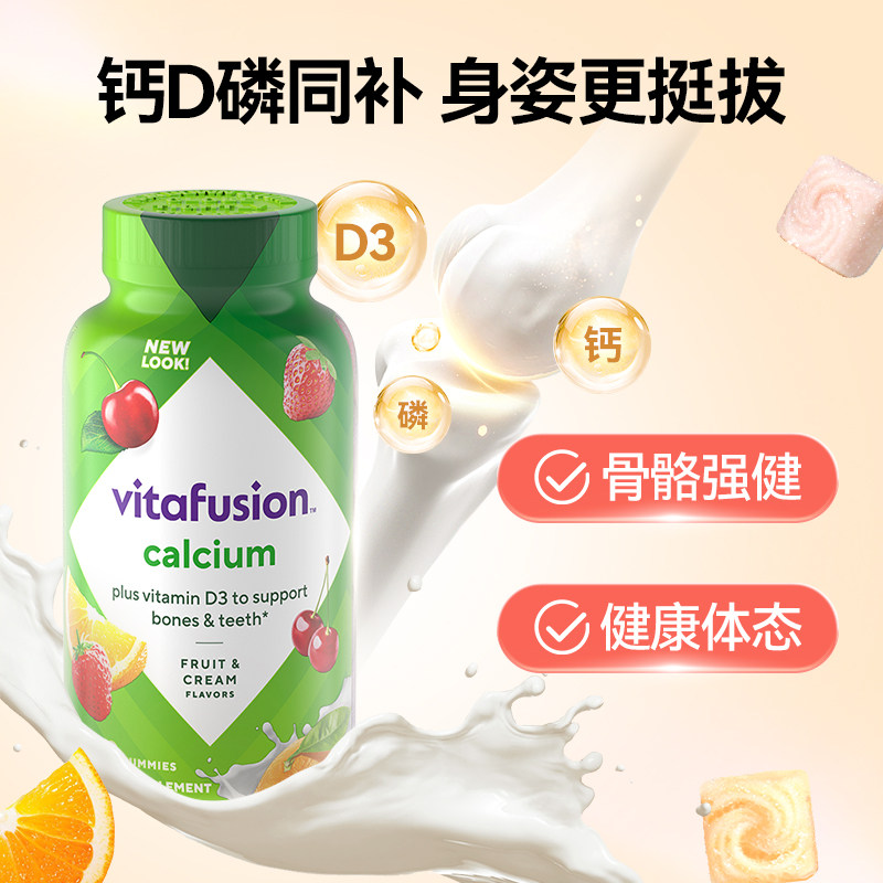 📚 【自营】进口Vitafusion水果奶味钙软糖3瓶装营养骨骼钙补钙100粒