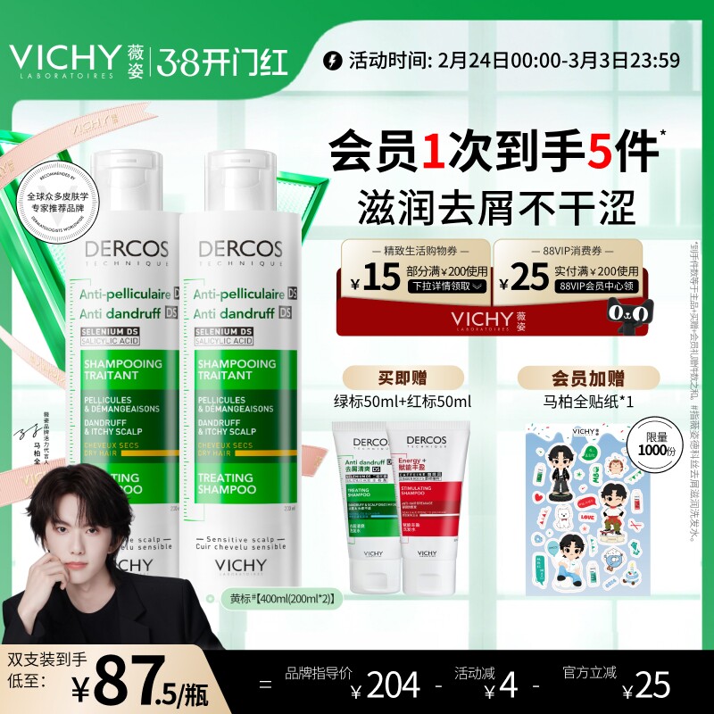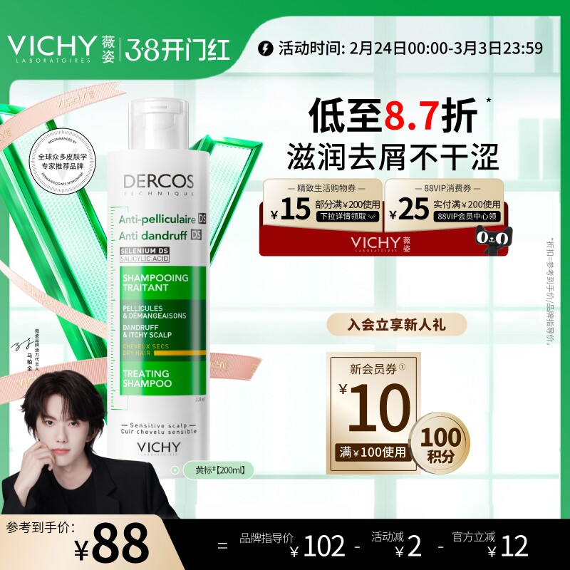 📚 薇姿黄标洗发水去屑水润二硫化硒干性头皮护理洗发露官方品牌正品