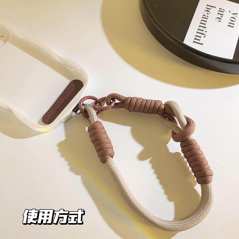 📚 简约ins拼色编织手机挂带手提链腕带式通用手机壳diy含夹片ccd