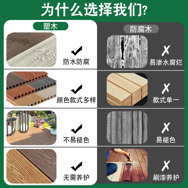📚 塑木地板户外圆弧地台露台木塑庭院防腐木露台阳台室外地台自铺板